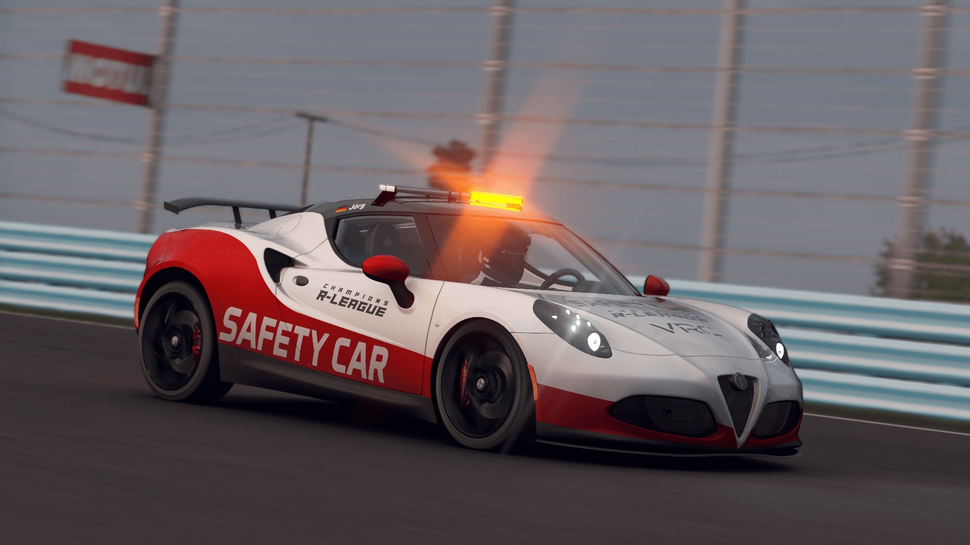 Our community safety car! After the vote, it became the Alfa Romeo 4C, which is a bit boring on its own. That's why I built a small scratch-made Aero Kit to better adapt the car to the LMPs! Additionally, there were slightly larger turbochargers installed so that the Alfa can come out of the corner quickly enough. I had a lot of fun with this slightly different project, hope you like the little racing machine too! The orange flashing safety car light is activated with EXTRA_A (a CSP button in the settings, default Alt+Num7). And the two green clearance lights are activated with EXTRA_B (default Alt+Num8).